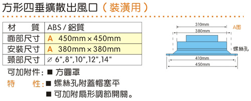商品名稱: ABS風口-方形四垂擴散式出風口,散流器(裝潢用)